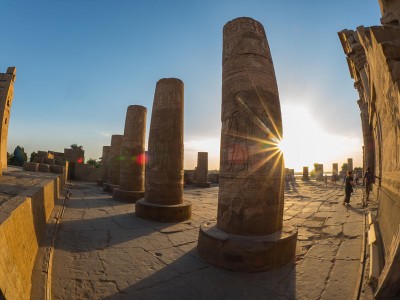 Early morning visit to Edfu temple— still in the area of the Navel chakra — we see the struggle of harmony and chaos through the story of Isis, Osiris, Set and Horus. At Edfu temple you will con- nect with your hidden emotions. We will visit the sanctuary in the rear of the temple of Horus — his energy is still very present. Take afternoon tea onboard as we sail to Esna. We next visit Luxor tem- ple which is associated with the naval chakra. Luxor temple describes the structure of the human body, incorporating its energy centres, the chakras.