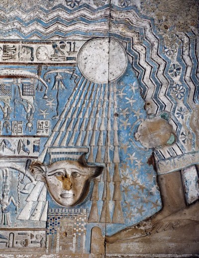 It is here on the ceiling were we see the famous Dendera zodiac, telling of man’s journey to the Gods. In the priests crypt you will see the Dendera lightbulb and much more.